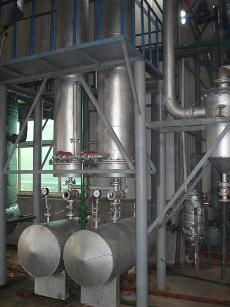 將反應(yīng)好的粗甲酯經(jīng)預(yù)熱器打入蒸餾系統(tǒng),本蒸餾系統(tǒng)采用三次蒸餾工藝,大大提高了油品質(zhì)量和得率,成品油的提取完全在高真空密閉系統(tǒng)中進(jìn)行,本系統(tǒng)設(shè)備全部為不銹鋼304材質(zhì),所以在高溫下不會氧化,使產(chǎn)品的顏色得到最佳。